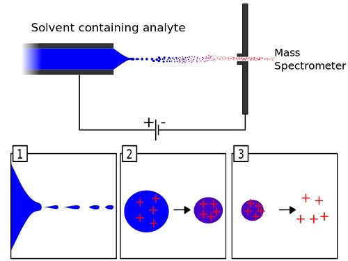 兩種主要技術(shù):硬電離和軟電離。使用硬電離技術(shù),樣品中的分子被加熱并碎裂到原子水平,提供有關(guān)分子原子結(jié)構(gòu)的信息。軟電離技術(shù),分子保持更完整,提供分子的質(zhì)量信息。該技術(shù)主要用于食品和制藥研究,過(guò)去十幾年很流行。 電噴霧離子源是一種流行的軟電離技術(shù)。EIS通過(guò)將氣體引導(dǎo)到帶電針頭旁形成氣溶膠噴霧來(lái)蒸發(fā)液體(例如來(lái)自液相色譜儀)。引導(dǎo)逆氣流通過(guò)形成的噴霧將蒸發(fā)大部分無(wú)需測(cè)量的液體,留下帶電的液滴進(jìn)入質(zhì)譜儀。 |