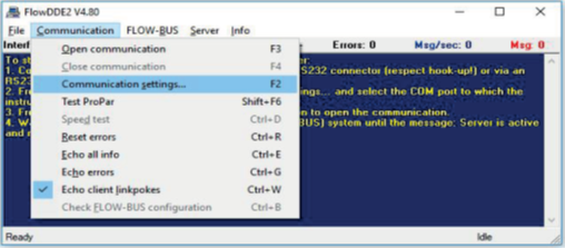- 硬件連接好后打開Flowdde,選擇正確的通訊設(shè)置