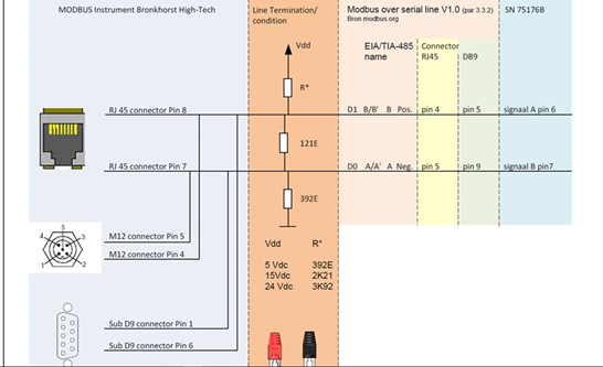 - Modbus RTU 通訊EL-FLOW Select系列RJ45接口Modbus通訊接線請參考以下接線圖https://www.bronkhorst.com/getmedia/3811a4d3-5390-46ca-8bed-07ae137b74b3/916123-Hook-up-diagram-Lab-MBC3-Modbus.pdfEL-FLOW Base系列 側(cè)面DB9針接口Modbus通訊接線請參考以下接線圖